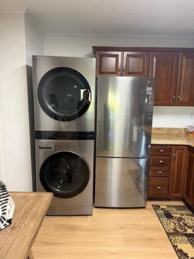 REMODELED G Model Unit (2 bed/2 bath, 1309 sq ft) with assigned Parking Space. This home includes an oversized Primary Bedroom and attached Bath with dressing area. Located in Building 1 with a view of majestic trees from the balcony in this conveniently located high rise building to all amenities via ground level or underground allowing the ability to traverse within the 37 acres community regardless of weather conditions. The tastefully designed Kitchen has Custom Cabinetry utilizing all space to the ceiling, with high end appliances to include Refrigerator, built in Microwave, Electric Range/Oven and Dishwasher with Laundry Center. Expanse of granite countertop for food preparation and meal service makes this Kitchen unique, yet still holds a pantry. Luxury Vinyl Plank flooring throughout with no transition strips for unobstructed walking. Clean light reflecting paint. Baths are upgraded with ceramic tile shower/tub combination in the Hall Bath and Vanity having Vessel sink. Primary Bath has walk-in shower and updated vanity with Vessel sink Each home at Watergate at Landmark has its own HVAC unit for consistent temperature control and the Seller will provide an annual Service Contract from Krafft HVAC Service with two servicings per year. Utilities included in monthly assessment are electricity, gas, water, sewer, garbage, building antenna and parking, along with access to amenities to include the Indoor and Outdoor Pools, Racquet Sports of Tennis and Pickle Ball, Volleyball area and Putt-Putt course along with indoor Driving Range, well equipped Fitness Center, Library, Convenience Store and Restaurant, Hair and Nail Salon on site, plus much, much more in a resort style atmosphere. Underground tunnel system allows access to the Fitness Center and Indoor Pool without traveling outside. This unit includes three parking passes for vehicles assigned to this unit; Guests and Frequent Visitors obtain additional passes as needed. Assigned Parking Space #44 attached to this unit and conveniently located on the B2 level, which is available from all four elevators in the building. Resort style living in a gated community just minutes away from DC, Alexandria, the Pentagon and National Airport. Pet friendly community with 24 hour Patrol Services, situated on 37 acres of exclusively landscaped surroundings of mature greenscape. WAL has a prime location in Alexandria, Virginia with amenities unmatched by other condominium complexes while living in a serene cohesive residential community.